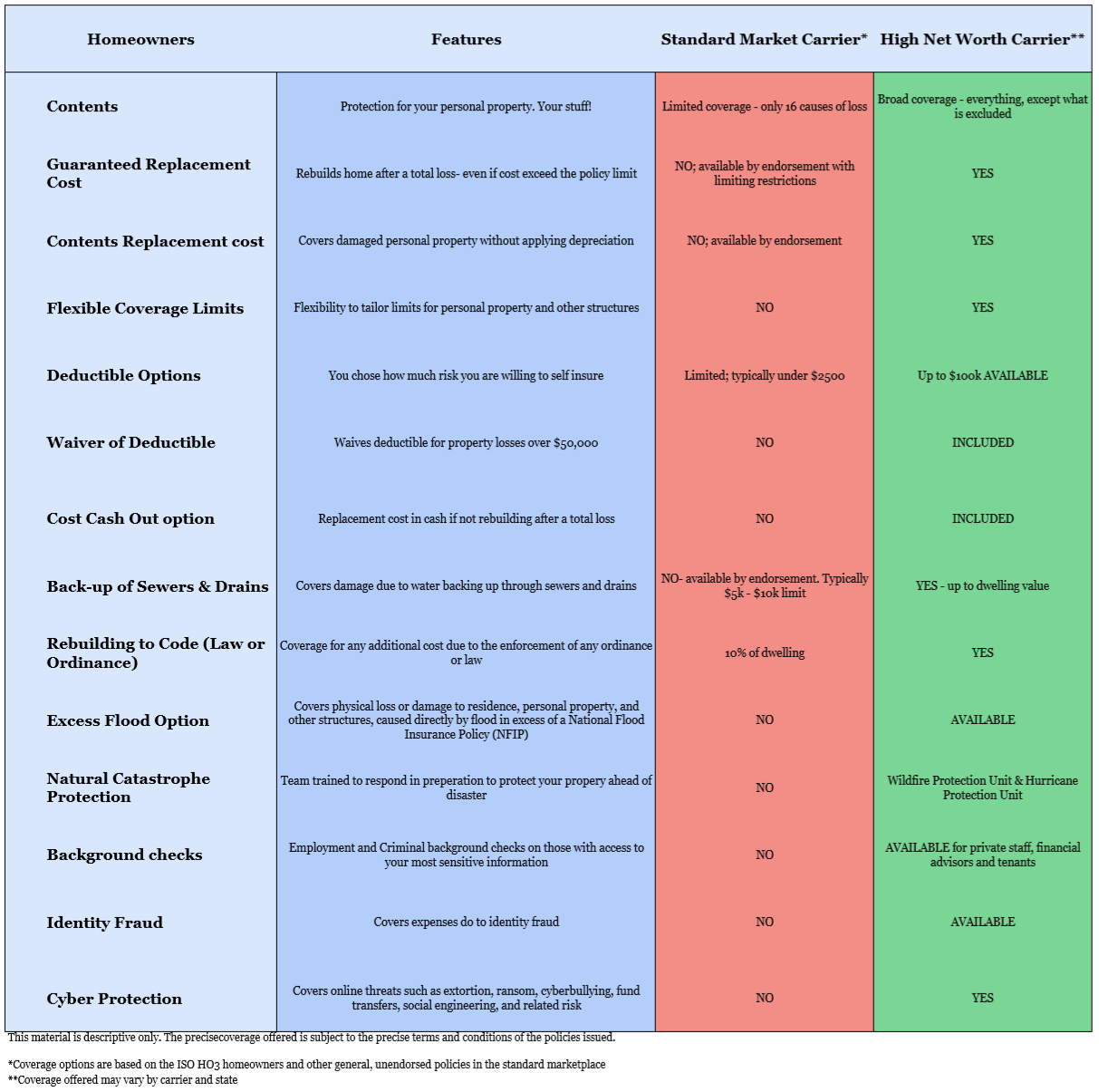 It’s important to understand that no two homeowners’ insurance policies are created equal. Different insurance companies offer different levels of coverage, various endorsements, and riders, and have different conditions and limitations.